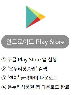모바일에서 온누리 상품권을 사용하기 위해서는 먼저 핸드폰에 앱을 깔아야 합니다.