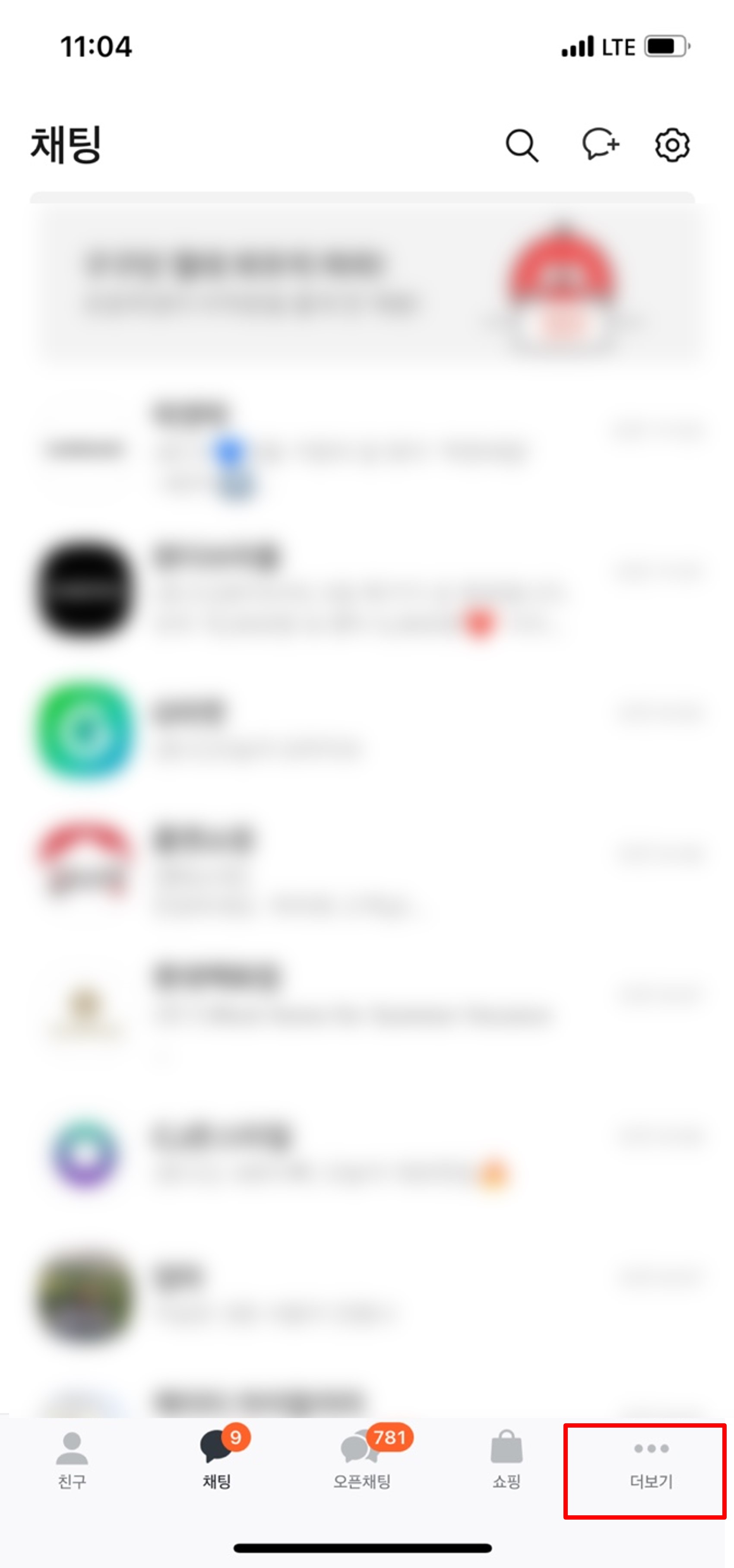 먼저 본인의 카카오톡 계정을 확인하려면, 카톡>더보기>설정(오른쪽 위쪽의 톱니바퀴)를 확인하시면 아이디를 바로확인하실 수 있습니다.