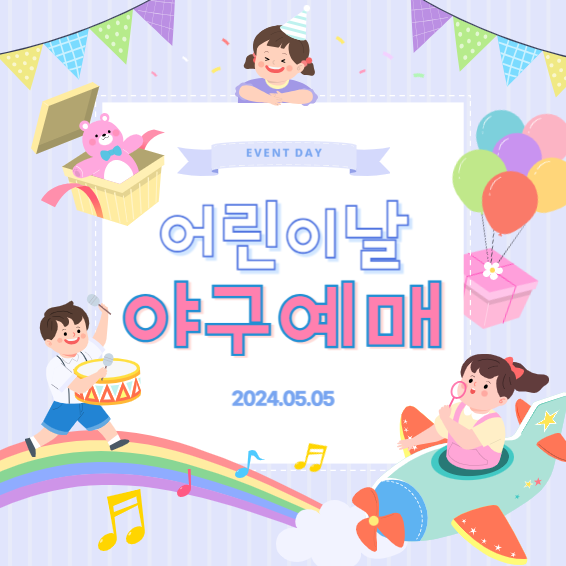 5월 어린이날 야구경기 일정 및 야구예매에 대해 알아보겠습니다. 2024년 5월 어린이날은 일요일로 대체 공휴일이 적용되어 5월 6일 월요일까지 휴일입니다. 토요일부터 월요일까지 3일간의 휴일 동안 여러 가지 이벤트가 있는 야구장으로 나들이를 예약해 보세요.