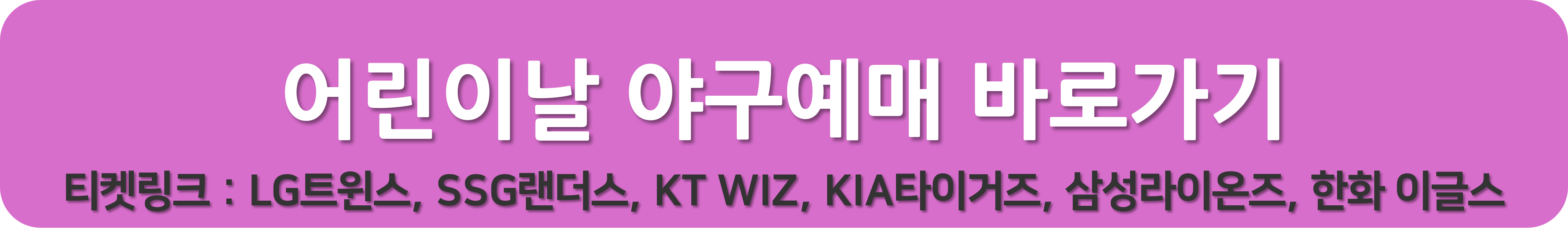 어린이날 야구예매는 구단별로 자사 구단 사이트에서 예매가 가능하거나, 타 예매 사이트를 이용해야 합니다. 아래의 링크는 각구단별 예매가능한 사이트로 바로 가기가 가능하니, 더 늦기 전에 응원하시는 구단의 표를 예매하시기 바랍니다.